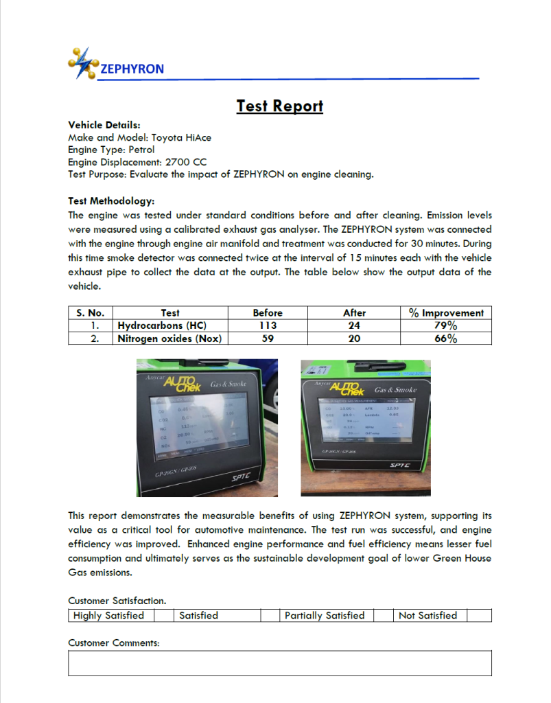 Zephyron tackles the issue of carbon deposits in internal combustion engines, which reduce vehicle performance. Convention engine cleaning methods are labour-intensive, time-consuming, and rely on harmful chemicals, leading to lost customers and high operational costs for automobile workshop owners.